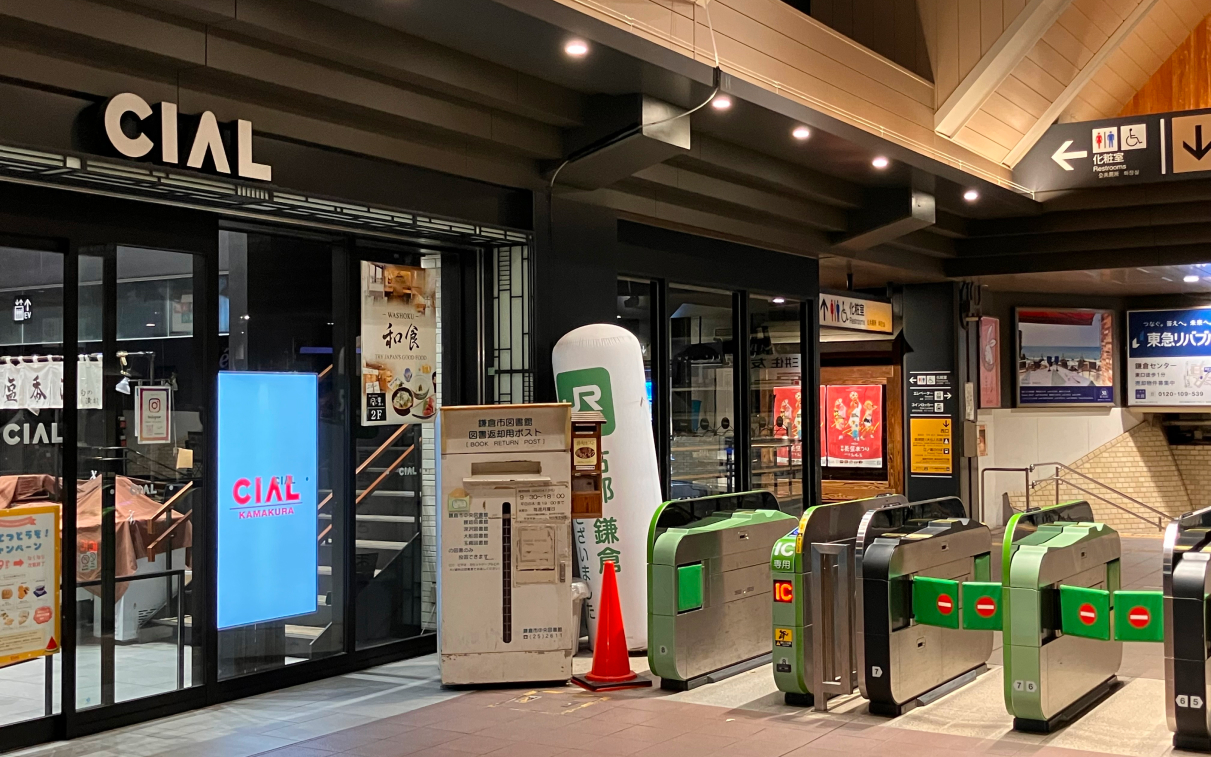 JR鎌倉駅直結のCIAL鎌倉店。1日4万人近い乗降客のある湘南観光のメインゲートに、65インチ(4K)を設置いただきました。 和食レストラン、カフェ、鎌倉グルメを取り揃えた和洋菓子やお土産店まで、日々駅を利用されている方や観光で鎌倉を訪れた方々に、改札から告知しております。木目調の駅舎に合わせた木製スタンドを採用し、空間にマッチ。歴史を称えつつ、新たなデジタルサイネージを活用し、ご店舗様のご案内に貢献しております。